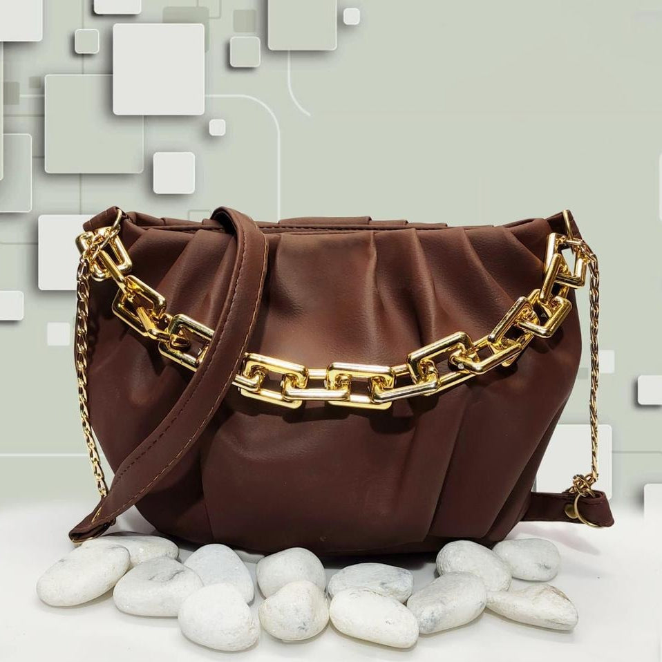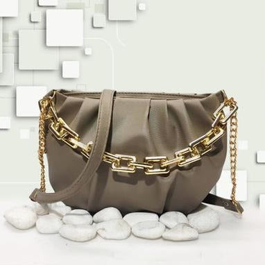 This elegant crossbody bag is perfect for Pakistani women who want to carry style without compromise. Whether you’re heading to work, a casual outing, or a special event, this bag offers both comfort and sophistication. Its sleek design and sturdy construction make it ideal for daily use, while the gold-toned chain adds a touch of luxury that complements any outfit. Made from premium PU leather, this bag is not only stylish but also durable enough to withstand everyday wear and tear. The soft, pleated texture gives it a modern, chic look, while the adjustable strap ensures a comfortable fit. The zipper enclosure keeps your essentials secure, and the compact size makes it easy to carry without weighing you down. It’s a practical choice for busy women who value both fashion and function. - Premium Quality PU Leather for long-lasting use - Stylish gold chain strap with adjustable length - Compact size: 9 inches wide x 7 inches high - Durable zipper enclosure for secure storage - New Arrival – best price in Pakistan - Lightweight and comfortable for daily wear